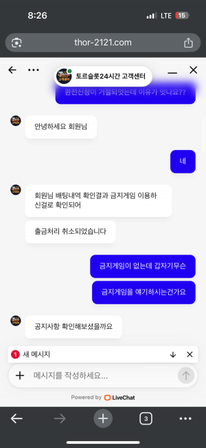 먹튀사이트명:토르슬롯 피해금액:1280만 사이트주소:thor-2121.com 내용: 금지…